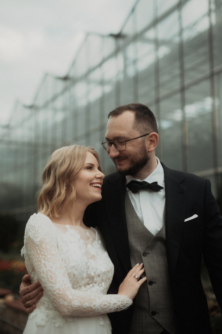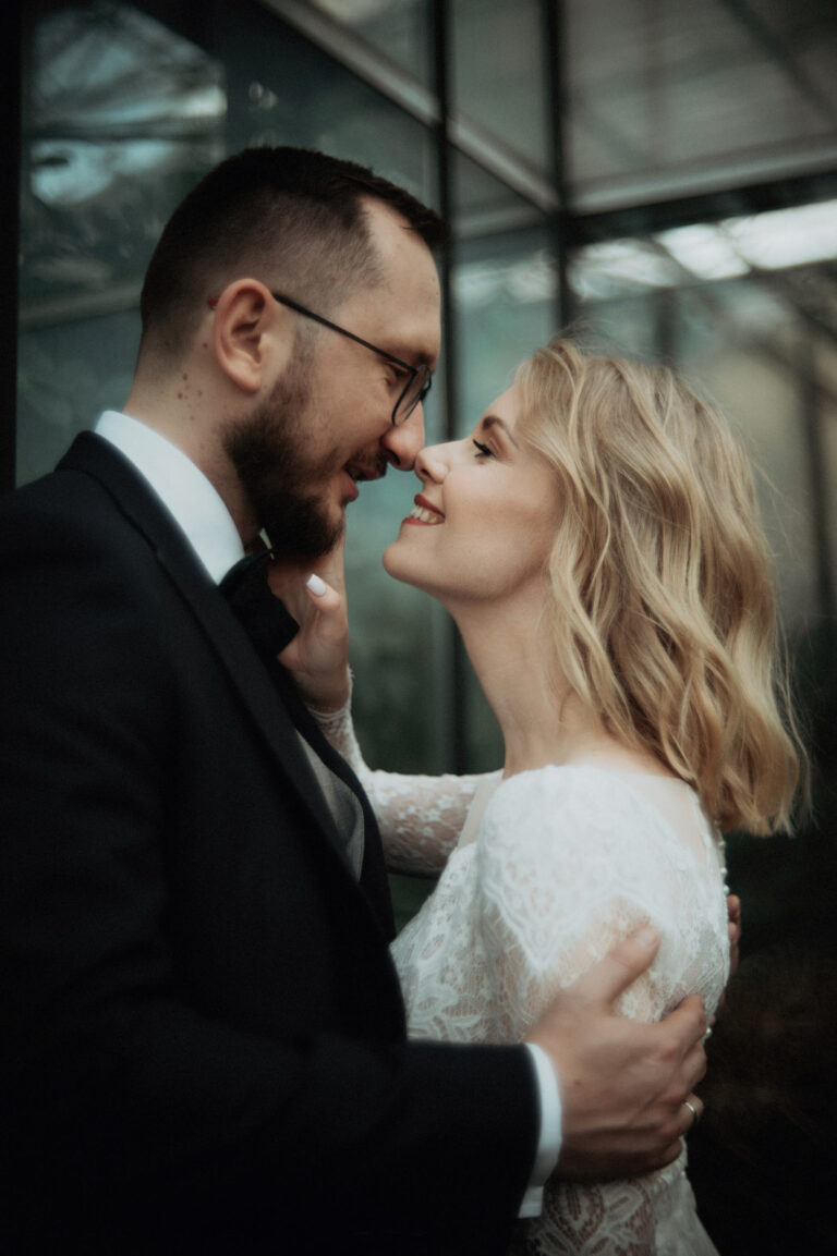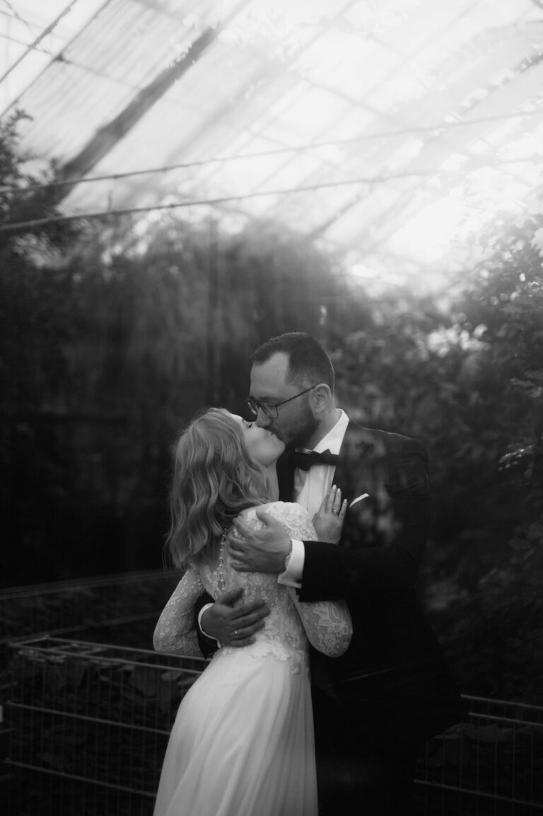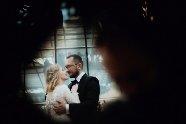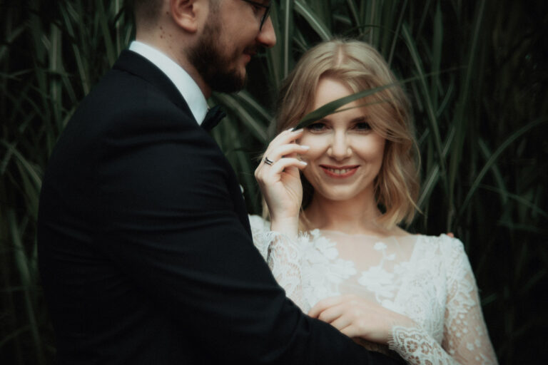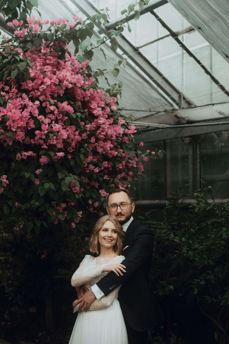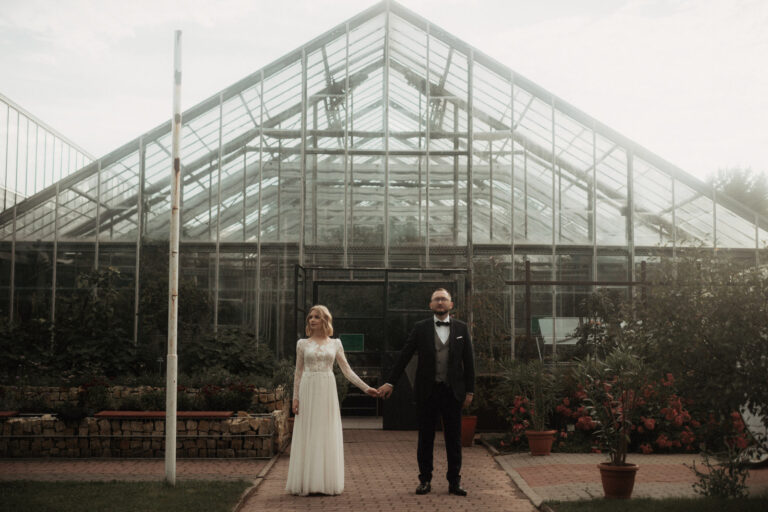 Przede wszystkim bujna roślinność, która tworzy niepowtarzalne, organiczne tło, podkreślając subtelność i elegancję fotografii. Dodatkowo szklarnie często mają nieco tajemniczy, zaczarowany klimat – jakby czas w nich zwalniał, pozwalając w pełni skupić się na emocjach i bliskości. To idealna przestrzeń dla par ceniących naturalność, spokój i wyjątkową estetykę.